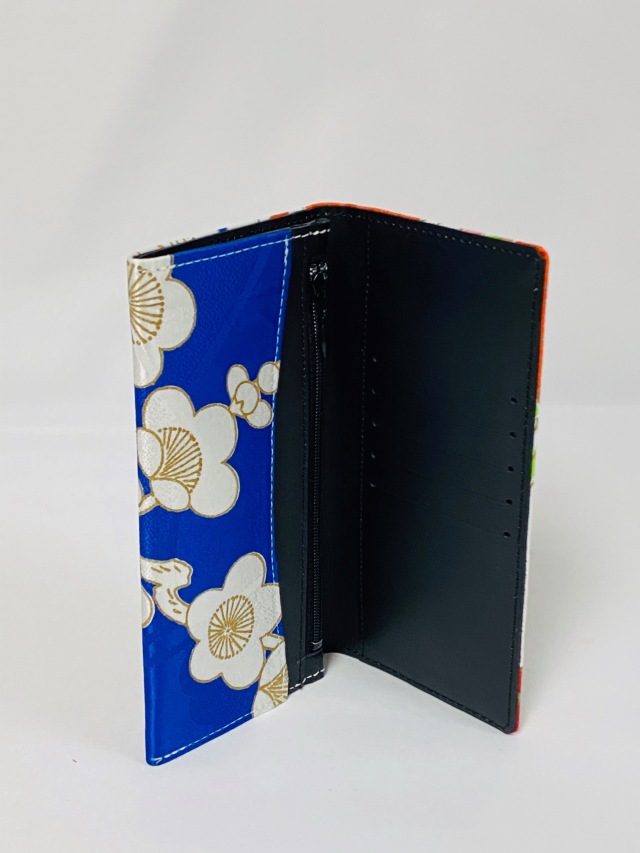 大きさも薄くあまり大きくないタイプで、帯の間にさし込め中の附属は黒色の牛革を使用しており高級感あふれる長財布です。