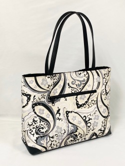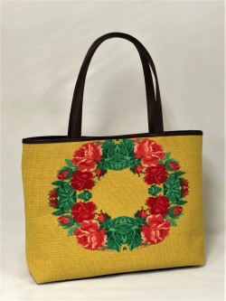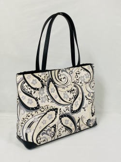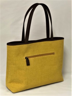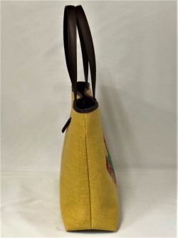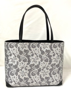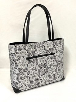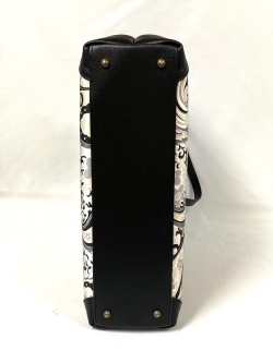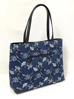 大型横長トートバッグです。洋服にも持てるバッグです。持ち手や底に革を使用しています。当店のハンドバッグは全て”オリジナル”です。